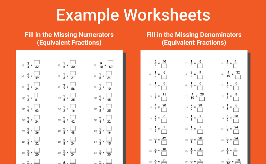- Level 6: Fill in the Missing Numerators (Equivalent Fractions)