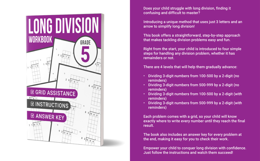 The Long Division Workbook Grade 5: Math Practice Sheets for Kids Ages 10-11 is an invaluable resource for any parent, teacher, or homeschooling family looking to support a fourth grader’s mastery of long division.