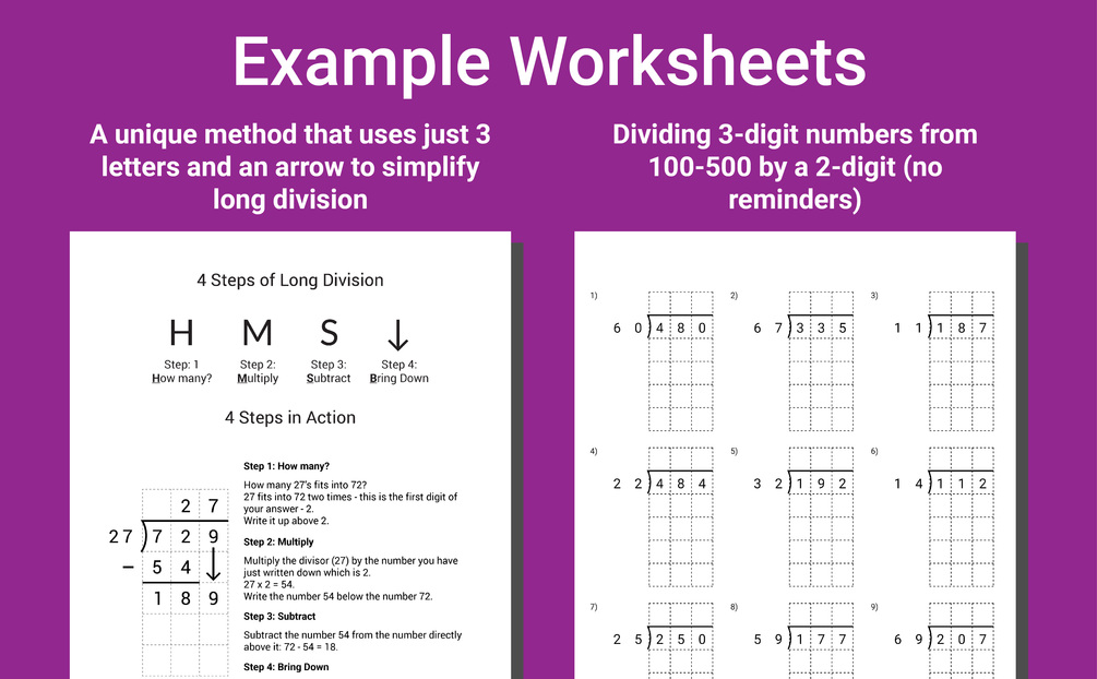 Many workbooks and practice sheets available today do not provide a straightforward, step-by-step approach to solving long-division problems, leaving students and parents frustrated.