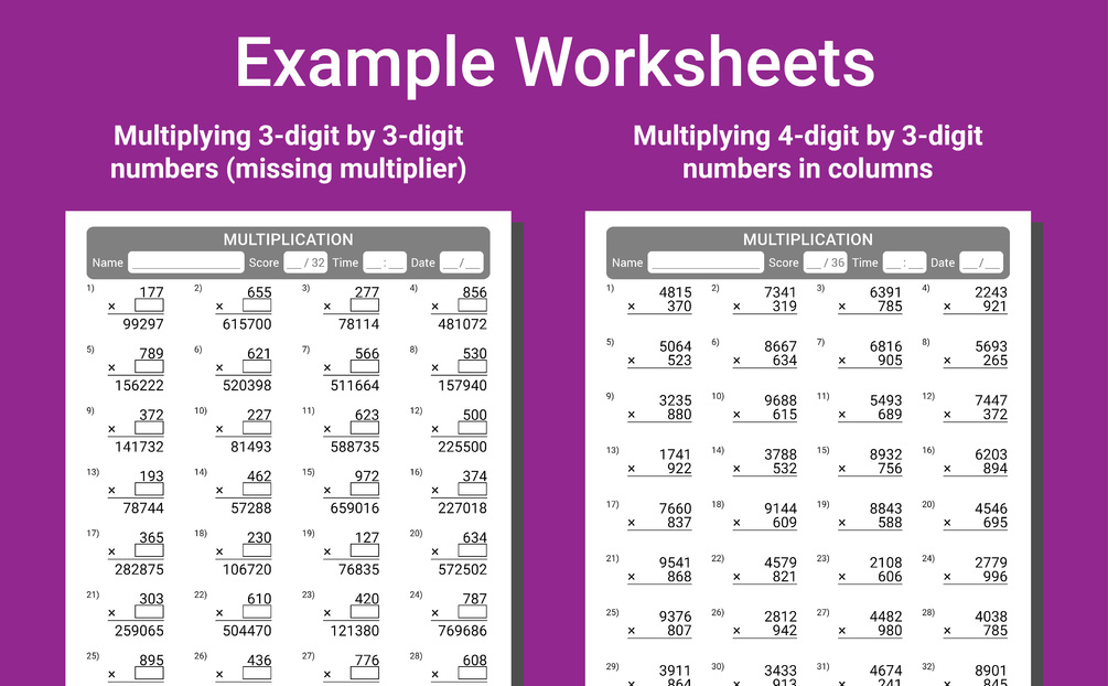 - Level 9 - Multiplying 4-digit by 3-digit numbers in columns