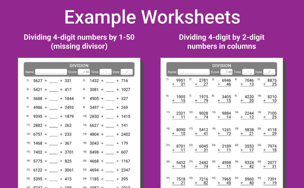 - Level 10 - Dividing 4-digit numbers by 1-50