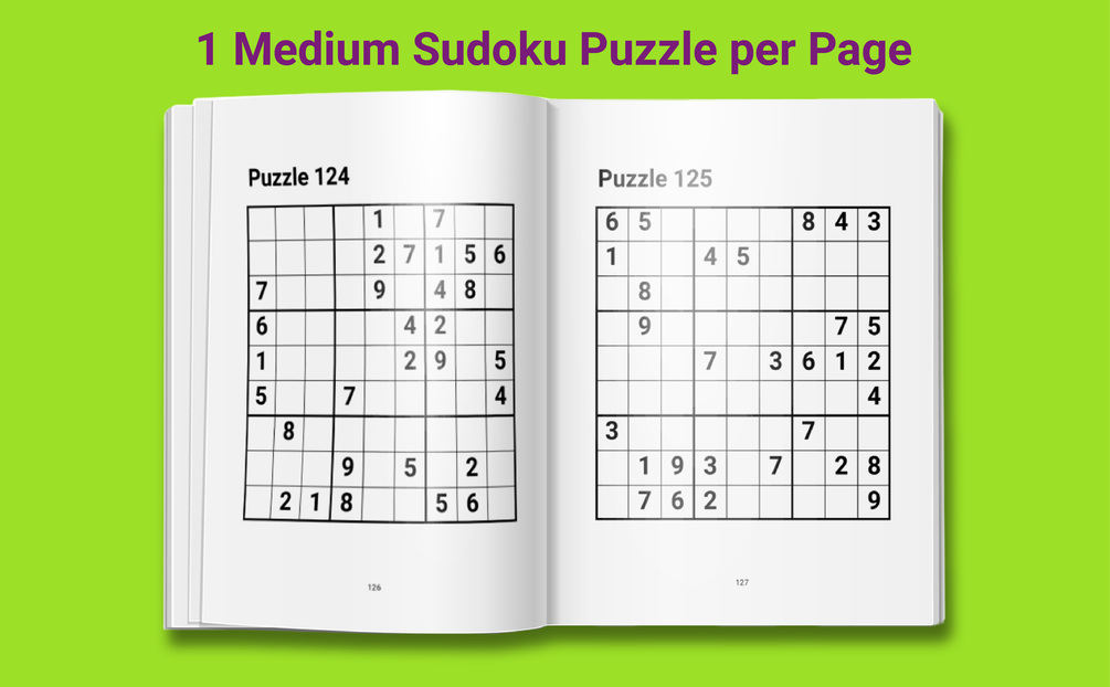 👉 You can finally enjoy stress-free problem-solving with 125 easy Sudoku puzzles - one per page.