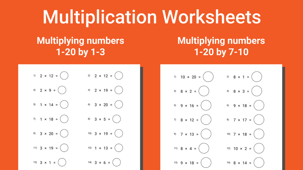 - Level 3: Multiply Numbers 1-20 by 7-10