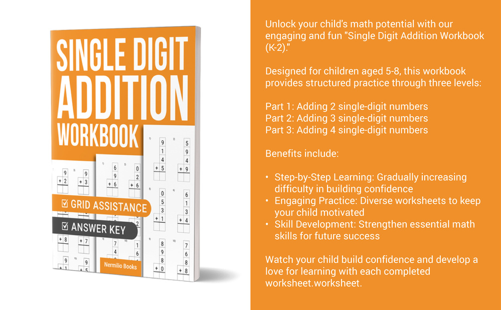 Unlock your child's potential in math with our "Single Digit Addition Workbook (K-2)"!