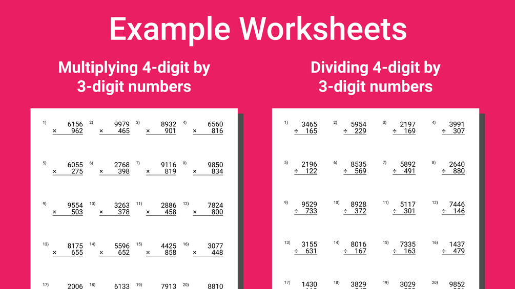 ▸ Multiplication & Division: Multiplying 4-digit by 3-digit numbers and dividing 4-digit by 3-digit numbers.