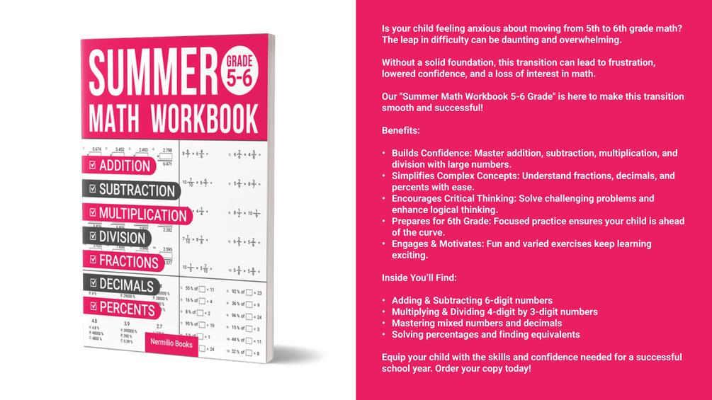 ✅ Our "Summer Math Workbook 5-6 Grade" is here to turn those worries into triumphs!