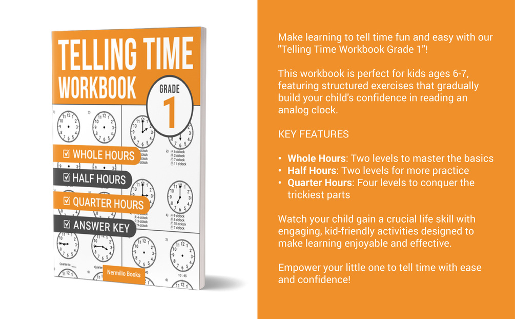 👉 Give your child the gift of time-telling mastery with the "Telling Time Workbook Grade 1."